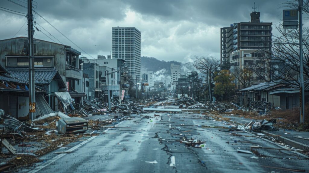- 局所的な強い揺れ:震源が浅いため、震源に近い地域では極めて強い揺れ(最大震度7)が発生し、木造住宅の倒壊や高層ビルの損壊、大規模なインフラ被害などが予測されます。