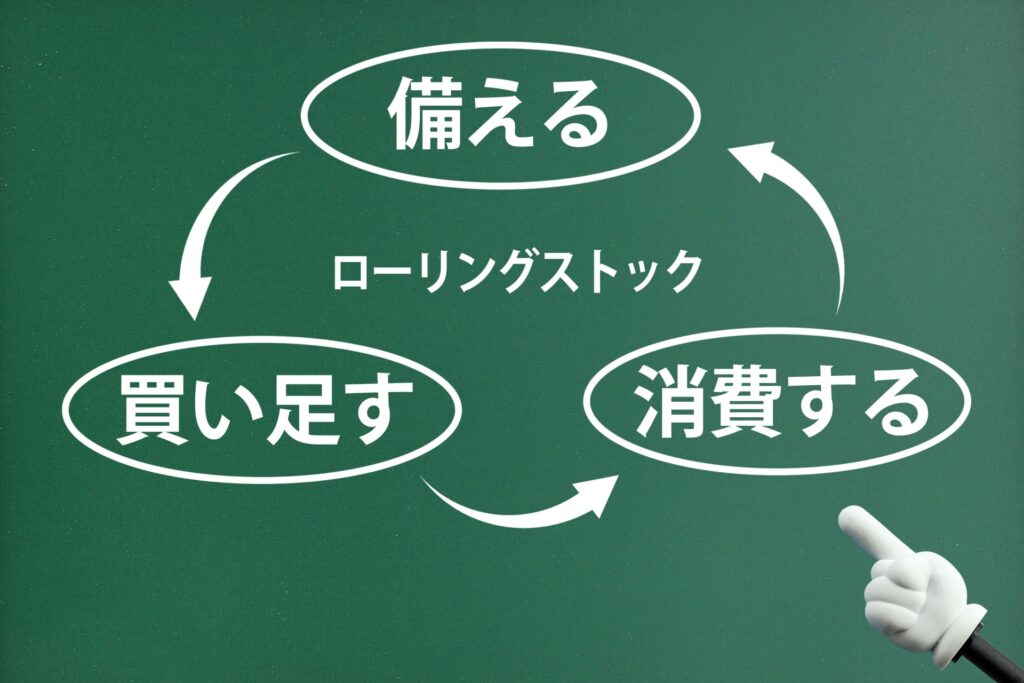 - 定期的な買い足し:消費した分は速やかに補充し、常に必要な備蓄量を維持します。