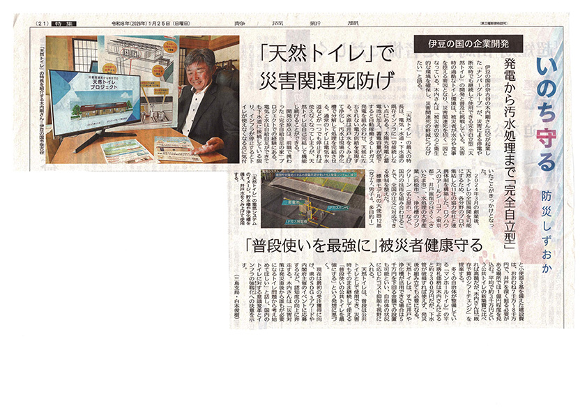 静岡新聞に「天然トイレ」の取り組みが掲載されました