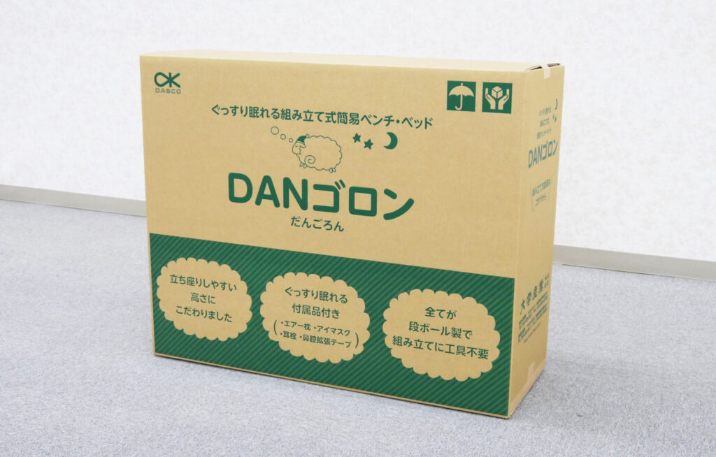 「DANゴロン」は、床の冷たさや硬さを軽減し、非常時でも安心して休める睡眠環境をつくる組立式簡易ベッドです。